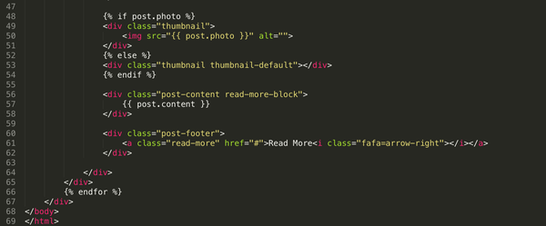 需要加入链接的地方有文章标题和Read More按钮,可以使用{% url %}来达成。