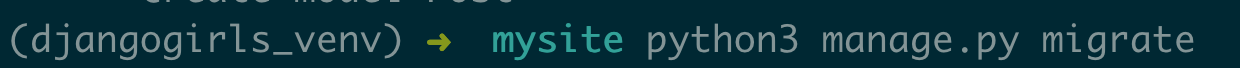 然后用以下命令,让Django根据以上记录将model.py中的字段写入数据库: