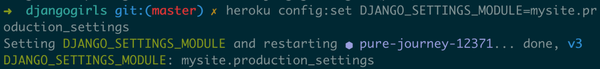 Django现在已经成功启动,但还需要进行数据库初始化,利用heroku run可以执行命令: