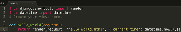 以上代码做的事情是:从django.http模块中引用HttpResponse类,定义名为hello_world的view,当此view被调用时,返回包含字符串\”Hello World!\”的HttpResponse对象。