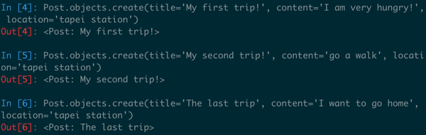 打开trips/models.py,创建一个Post类并定义属性,Django会依据这个类创建数据表以及表中的字段: