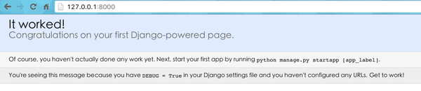 在浏览器中输入网址:http://127.0.0.1:8000/,会看到项目已经在web server执行: