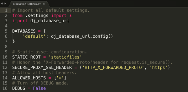 production_settings.py:前面章节通过修改settings.py来调整Django project的设置,但通常正式上线(production)的环境和开发/本机(development/local)环境有所不同,所以在mysite/mysite/下新建一个production_settings.py来存放部署时的设置: