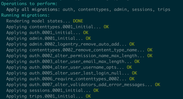 8、用startapp命令建立名为trips的app: