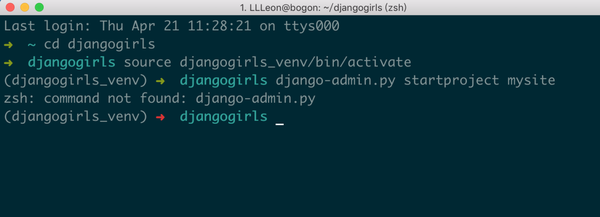 如果之前已经安装过Django,未在当前虚拟环境下安装,需要添加环境变量至PATH,否则报错: