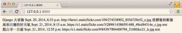 目前浏览文章的pk会传入view中,上面网址传入的pk为5(URL与pk的对应稍后设置,见本章第3节);当传入的pk=5,代表访客想浏览pk=5的那篇文章,利用ORM语法get,取得该片文章的Post对象:post = Post.objects.get(pk=pk),然后回传HttpResponse对象:将取得的post传入Template post.html,并呈现render后的结果。
