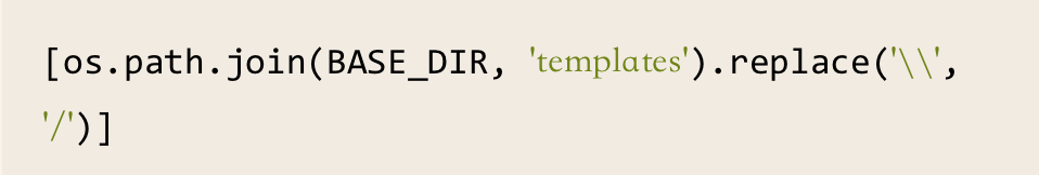 其次需要修改mysite文件夹中setting.py的TEMPLATES设置,将\’DIRS\’的[]修改为: