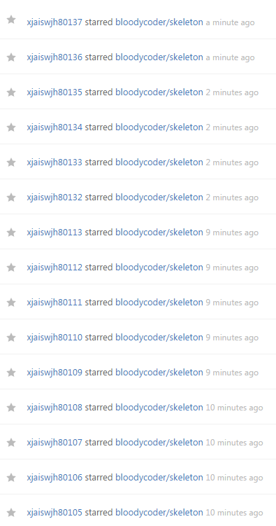这一步还能干啥呢,该干的都干了,现在当然是疯狂的用刚刚注册好的帐号来点star。我们来看看效果。