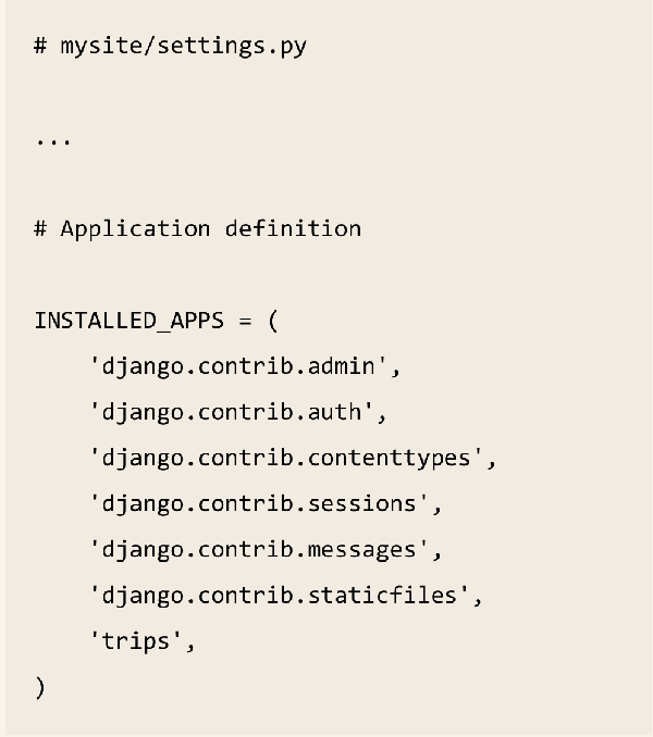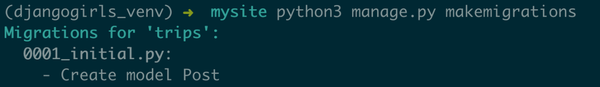 打开trips/models.py,创建一个Post类并定义属性,Django会依据这个类创建数据表以及表中的字段: