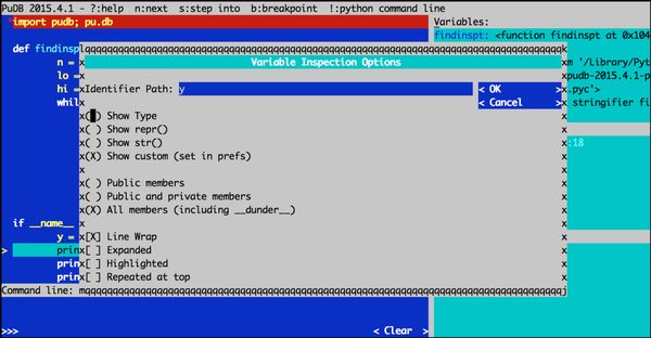 | 123 | from pudb import set_trace; set_trace()orimport pudb; pu.db |