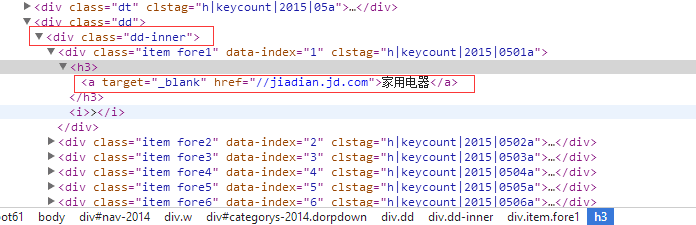 这一行代码完全满足我们的需求,首先用find方法,定位到了class=“dd-inner”的div,然后使用find_all对该标签下所有的a标签。