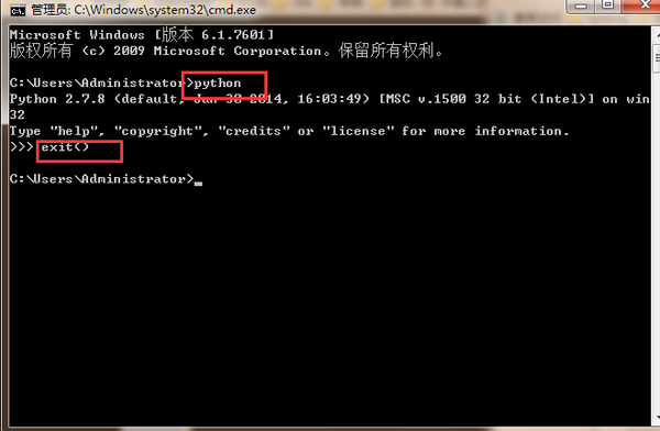 重新打开cmd,输入python,显示安装的python版本;