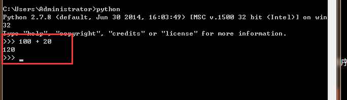 4、这就是python的命令书写界面,这里输入数字可以直接得到结果,如下图:
