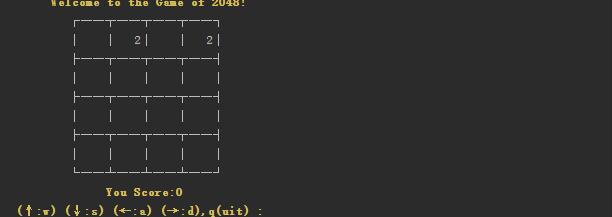 以前游戏2048火的时候,正好用其他的语言编写了一个,现在学习python,正好想起来,便决定用python写一个2048,由于没学过python里面的界面编程,所以写了一个极其简单的无界面2048。游戏2048的原理和实现都不难,正好可以拿来练手,要是不知道这游戏的话,可以去网上查一下,或者下载一个到手机来玩一下,我就不在说其原理。我知道不放图的话大家一点兴趣都没,下面首先放一张游戏成型图,然后我们在来讲如何一步步用最基础的知识来实现。