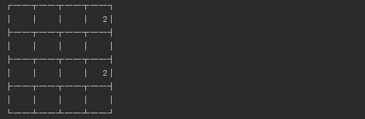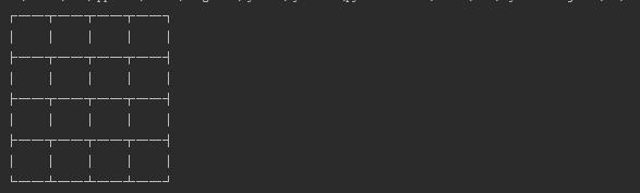 print将其打印出来。首先我们要生成一个全为0的4*4二维列表,然后用一些类似  \’┌ ├└,┤,┘┐│,─,┬,┴\’这样的字符来组成我们的边框,下面来看一下代码的实现