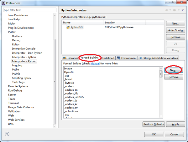 4.8 确定Forced Builtins里有PyQt4后,点OK