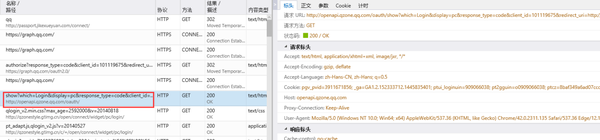 点击‘QQ登录’按钮后,抓包分析请求和回应: