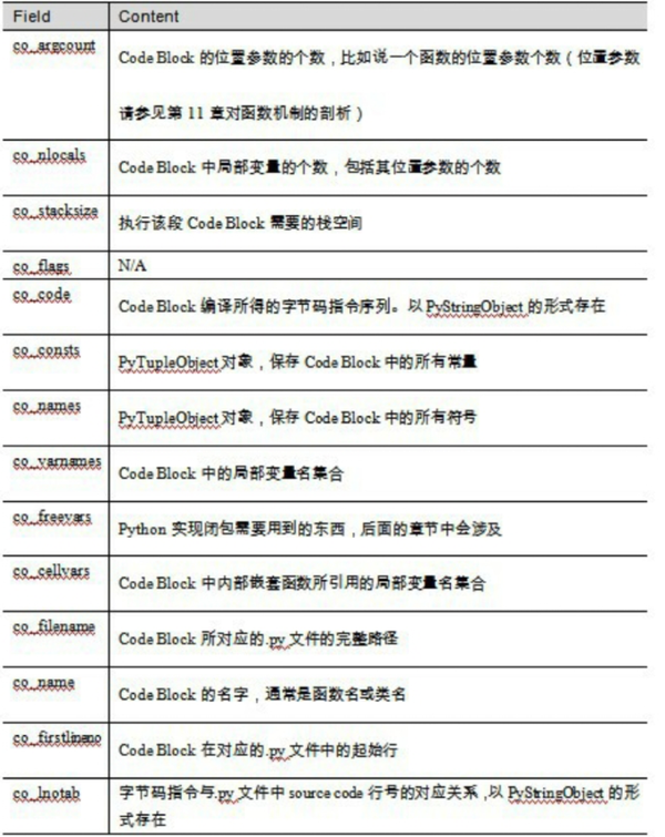 PyCodeObject 中co_code域保存的就是对操作编译生成的字节码指令序列。