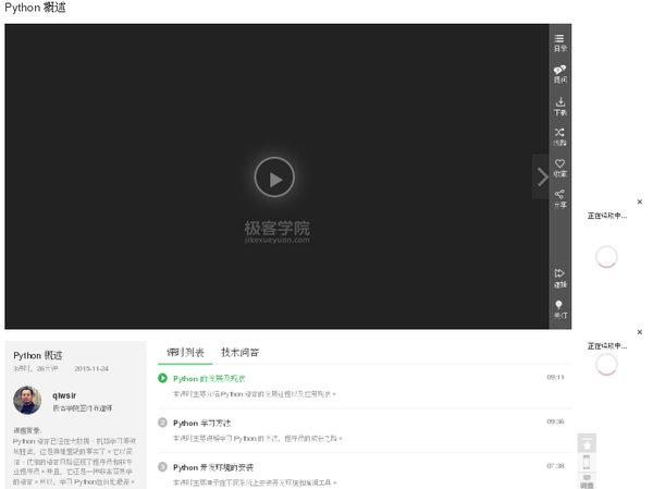打开python分类课程页面,http://www.jikexueyuan.com/course/python, 页面如下: