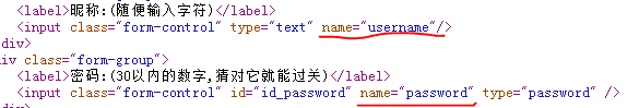 可以看到需要提交的昵称的name=“username”,密码的name=“password”