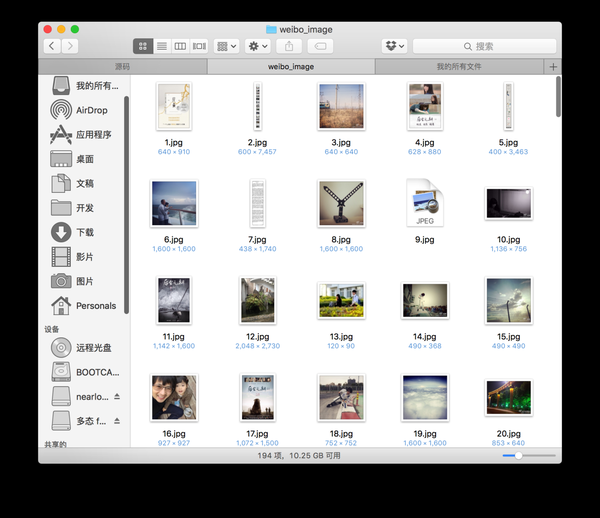 小问题:在我的测试中,有的时候会出现图片下载失败的问题,具体原因还不是很清楚,可能是网速问题,因为我宿舍的网速实在太不稳定了,当然也有可能是别的问题,所以在程序根目录下面,我还生成了一个userid_imageurls的文本文件,里面存储了爬取的所有图片的下载链接,如果出现大片的图片下载失败,可以将该链接群一股脑导进迅雷等下载工具进行下载。
