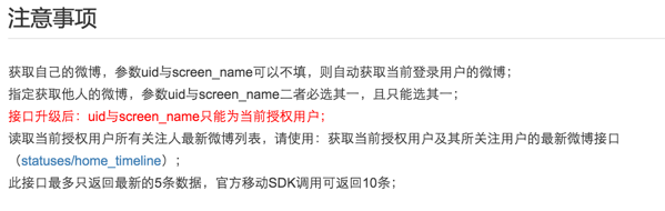 另外说点题外话,我一开始想使用Sina Weibo API来获取微博内容,但后来发现新浪微博的API限制实在太多,大家感受一下: